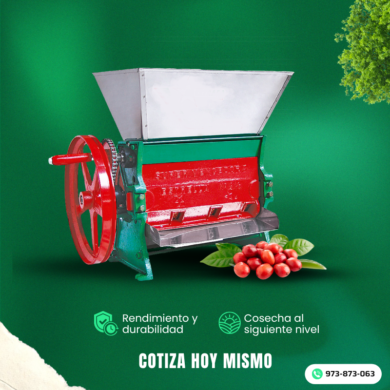 Ecológica para todo tipo de grano, despulpan perfectamente sin utilizar agua. Posee 3 chorros y viene en dos versiones Pechero Fijo o Graduable, con camisa en cobre o acero inoxidable. El cilindro, pechero, cureñas, engrane, polea, piñones y chapetas son fabricados en hierro colado, inmunes a la corrosión. Tolva, guarda de pulpa y babero en acero inoxidable.